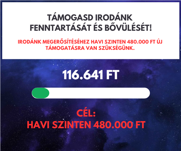 Szükségünk van rendszeres adományokra, hogy irodánkat fenn tudjuk tartani, és kicsit bővíteni is tudjuk. Egyrészt szeretnénk megerősíteni meglévő irodai kapacitásainkat, mert a folytonos inflációban nekünk is évről évre növekednek a terheink. Másrészt szeretnénk bővíteni is irodánkat, mert jelenleg egy teljes és két fél állás már kevés a feladataink ellátására. Irodánk megerősítéséhez havi szinten 480 000 Ft új támogatásra van szükségünk.
