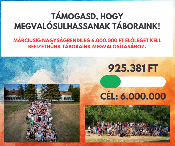 Márciusig nagyságrendileg 6 000 000 Ft előleget kell befizetnünk táboraink megvalósításához.