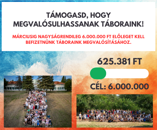 Márciusig nagyságrendileg 6 000 000 Ft előleget kell befizetnünk táboraink megvalósításához.