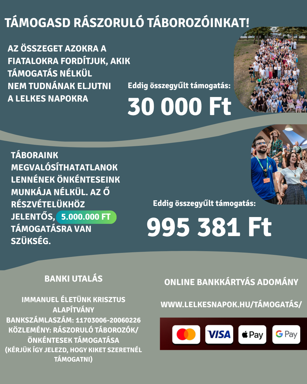 A Lelkes Napokat bankkártyás vagy Revolut-os fizetéssel itt tudod támogatni: